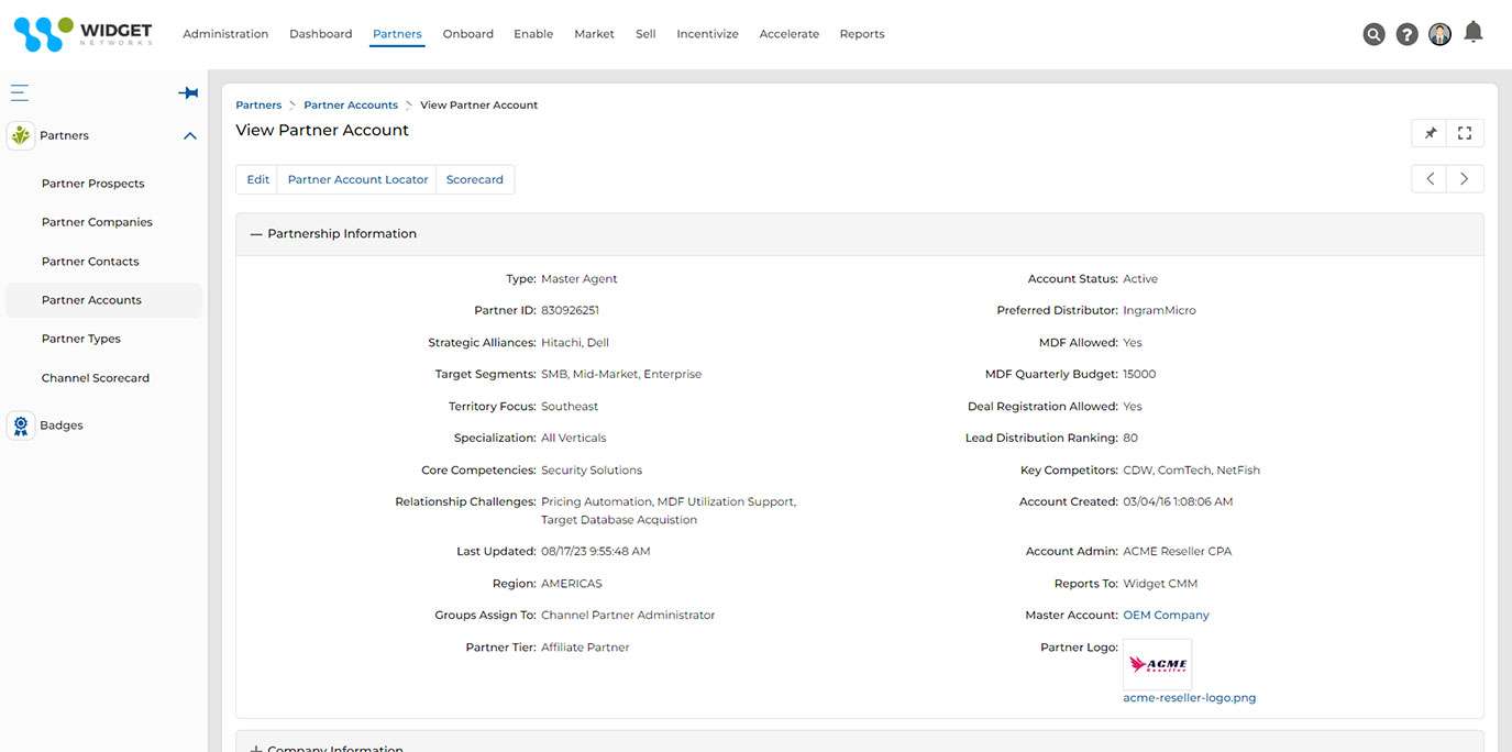 Partner Profile Management centralizes all partner data (prospects, companies, contacts) for a unified view. It resolves issues of fragmented data and poor segmentation by allowing vendors to categorize partners (types, tiers), define custom access controls, and implement channel scorecards. This results in accurate, scalable, and personalized channel operations, improving engagement and performance tracking for partners.
